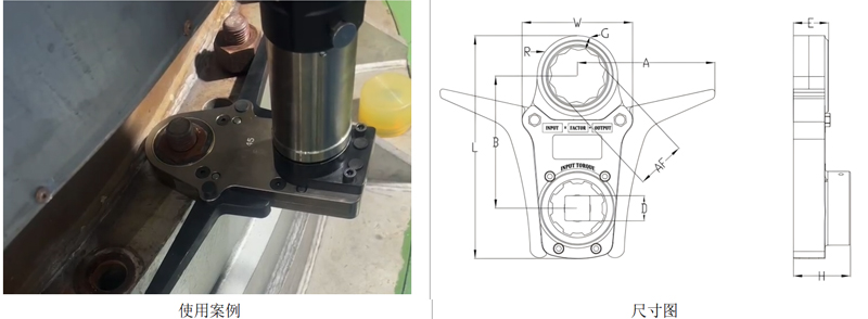 • 與電、氣動扭矩扳手,倍增器配合使用,偏置超薄設(shè)計,適合軸向空間受限工況;
