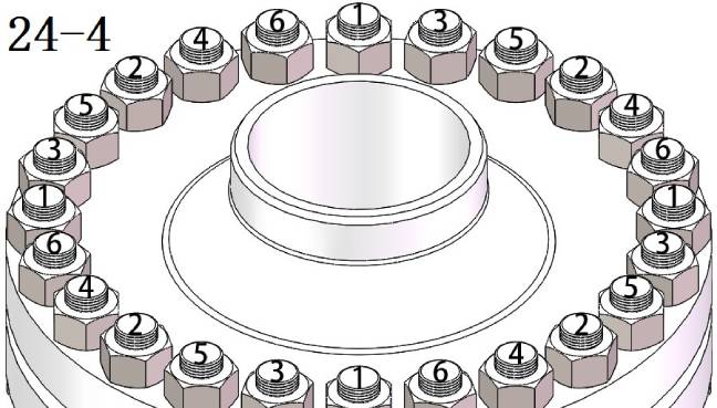 下來我們?cè)賮砜匆幌聝赏揭簤喊馐诸A(yù)緊法蘭時(shí)螺栓的預(yù)緊序號(hào)編排次序。2同步的預(yù)緊編號(hào)參照四同步方法,只是將螺栓總數(shù)平分為2部分進(jìn)行編號(hào),后面都是以每次平分的中間數(shù)為次序編號(hào)螺栓依次進(jìn)行編號(hào),編完為止。