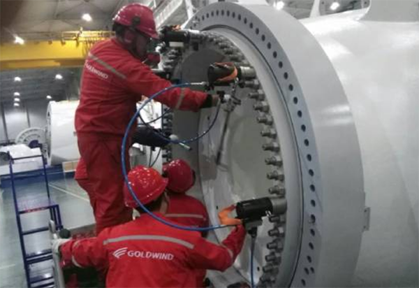 這也就是為什么在實(shí)際的風(fēng)力發(fā)電機(jī)安裝過程中為什么要使用高精度的液壓扳手和風(fēng)電專用螺栓拉伸器來嚴(yán)格按照要求施加預(yù)緊力預(yù)緊風(fēng)機(jī)螺栓,避免因精度不足造成實(shí)際作用在螺栓上的預(yù)緊力過小導(dǎo)致螺栓實(shí)際壽命低于設(shè)計(jì)壽命。