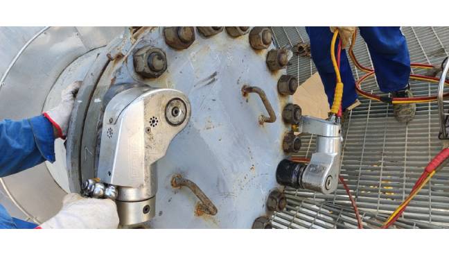 遇到這種故障,如果扳手力矩偏小,更換適合力矩的液壓扳手。如果打來防塵蓋看到有明顯金屬碎屑,說明一定是驅(qū)動機械件斷裂磨損,檢查并更換磨損損壞機械件即可。注意更換時必須清洗干凈內(nèi)部碎屑,安裝時做好各配件的二硫化鉬潤滑。