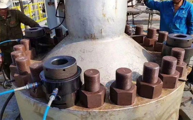 當(dāng)需要同步拉伸多個(gè)螺栓時(shí),建議選用配備同步器的拉伸器系統(tǒng)。這類系統(tǒng)包括兩種常見配置:一種是兩個(gè)同步器,即一個(gè)泵配兩個(gè)拉伸器,另一種是四個(gè)同步器,即一個(gè)泵配四個(gè)拉伸器。通過這些同步器,可以確保每個(gè)螺栓受力均勻,實(shí)現(xiàn)負(fù)載的平衡。